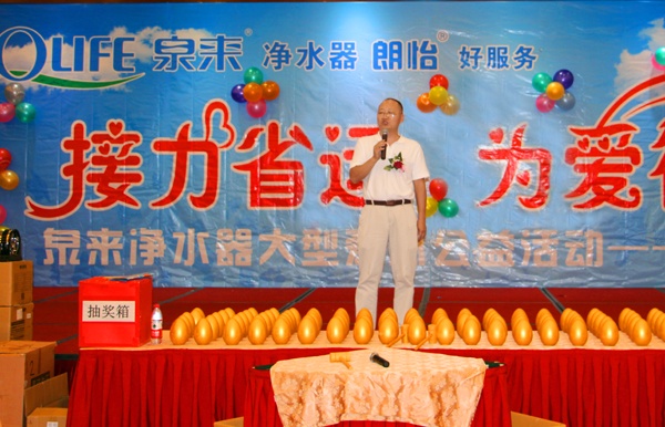 “泉來(lái)”作為中國(guó)凈水器行業(yè)十大品牌之一,19年專注凈水,擁有國(guó)際領(lǐng)先的超濾膜技術(shù)和反滲透凈水器研發(fā)能力,其技術(shù)實(shí)力、生產(chǎn)規(guī)模、產(chǎn)品品質(zhì)長(zhǎng)期處于行業(yè)領(lǐng)先地位。在做好產(chǎn)品的同時(shí),泉來(lái)始終堅(jiān)持秉承“改善水質(zhì)、服務(wù)社會(huì)”的企業(yè)使命,將公益活動(dòng)與泉來(lái)產(chǎn)品有機(jī)結(jié)合,曾先后為雅安地震災(zāi)區(qū)、汶川地震災(zāi)區(qū)捐贈(zèng)上百萬(wàn)元凈水設(shè)備用于災(zāi)后救援飲水支持,連續(xù)5年為揚(yáng)州國(guó)際馬拉松賽事現(xiàn)場(chǎng)建立直飲水點(diǎn)。多年來(lái)泉來(lái)一直積極于公益事業(yè)活動(dòng)。類似此次的愛(ài)心公益活動(dòng)泉來(lái)集團(tuán)也將持續(xù)在全國(guó)各地召開(kāi),為提高國(guó)人的飲水品質(zhì)貢獻(xiàn)自己的力量。
